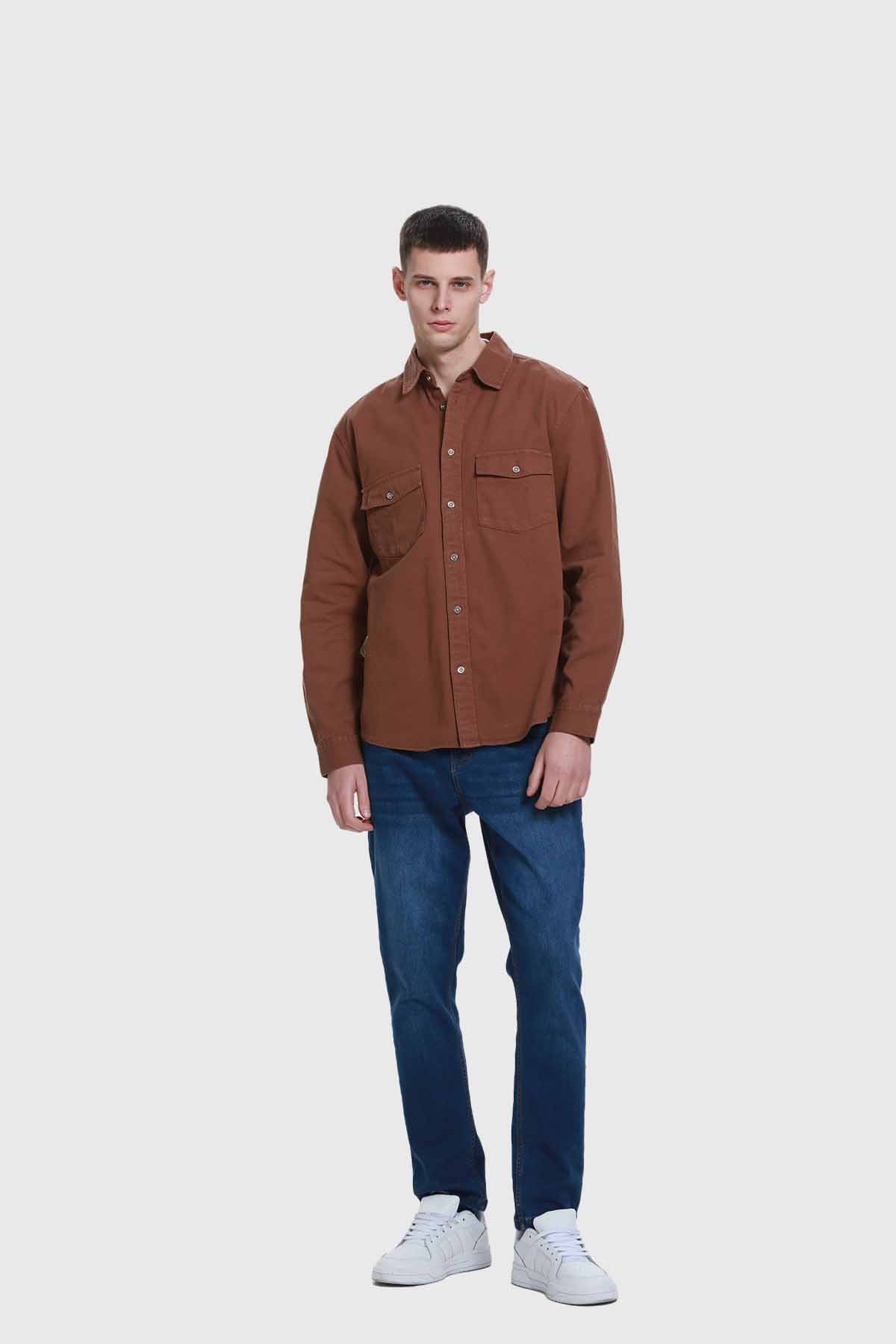 Descubre la camisa hombre color café, confeccionada en suave algodón que brinda una comodidad excepcional. Su diseño clásico con dos bolsillos frontales y botones metálicos le da un toque distintivo y versátil, ideal para cualquier ocasión. Perfecta para combinar con jeans o pantalones de tela, esta prenda se siente ligera y acogedora al mismo tiempo. Al usarla, experimentarás una sensación de frescura y estilo que realza tu personalidad. Atrévete a lucir auténtico y a destacar con esta camisa que se convertirá en un básico de tu guardarropa.