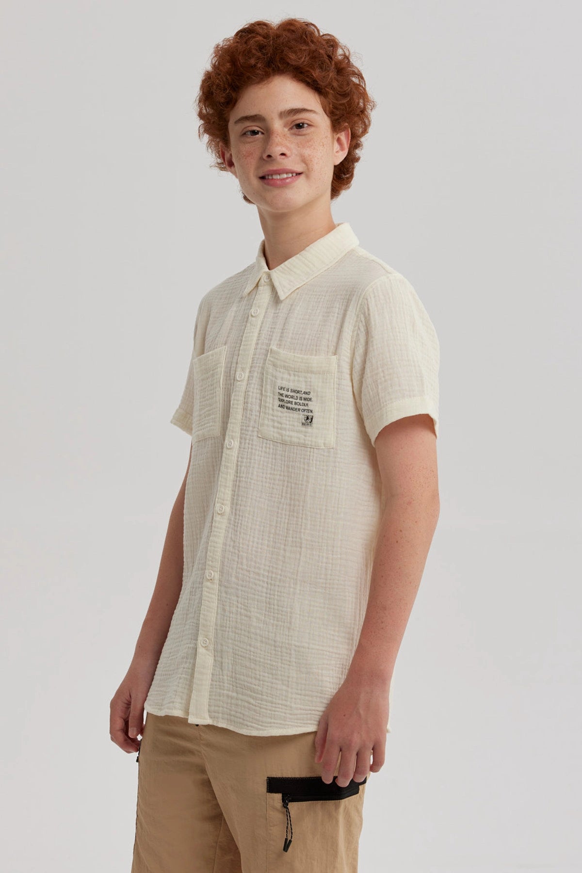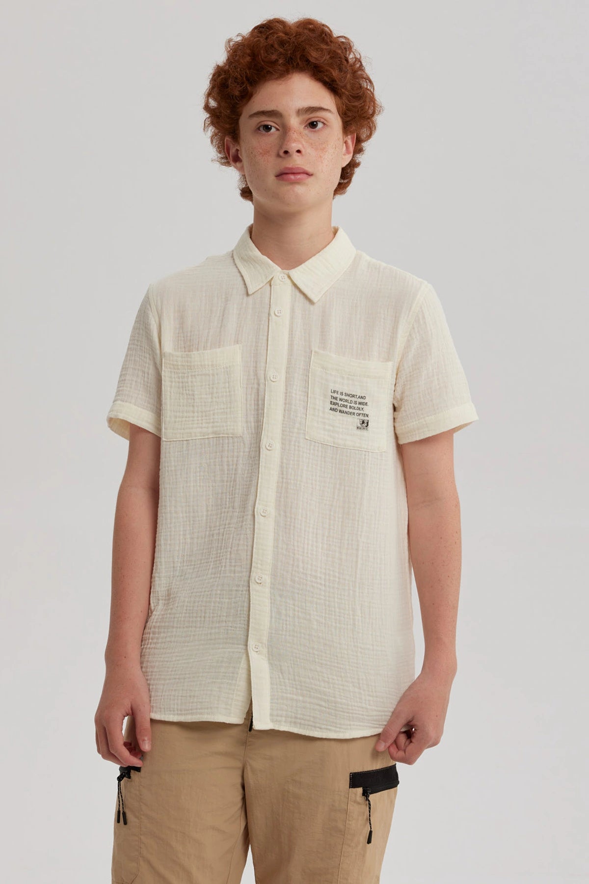 Inicio/Black Friday/Camisa Niño Texto En Bolsillo Crudo