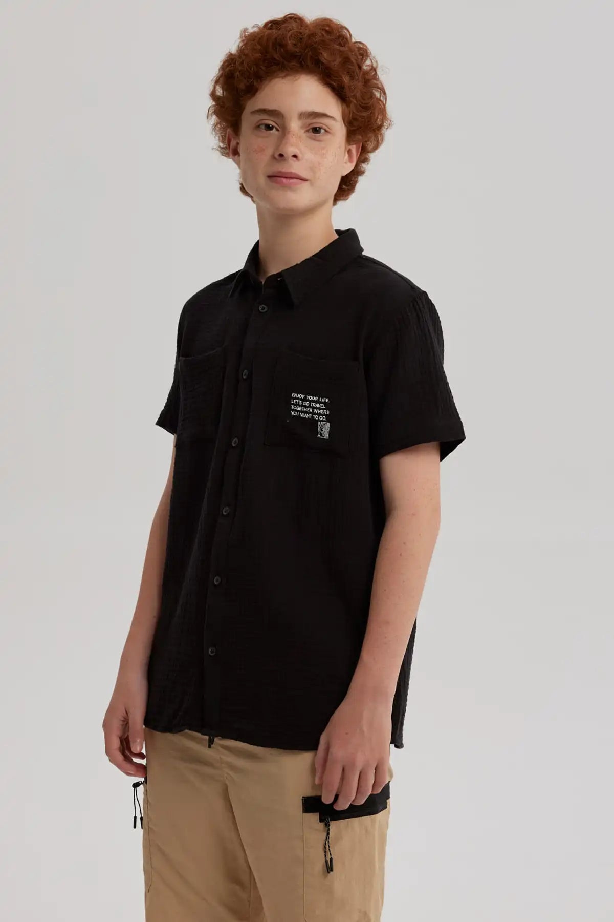 Inicio/Black Friday/Camisa Niño Texto En Bolsillo Negro