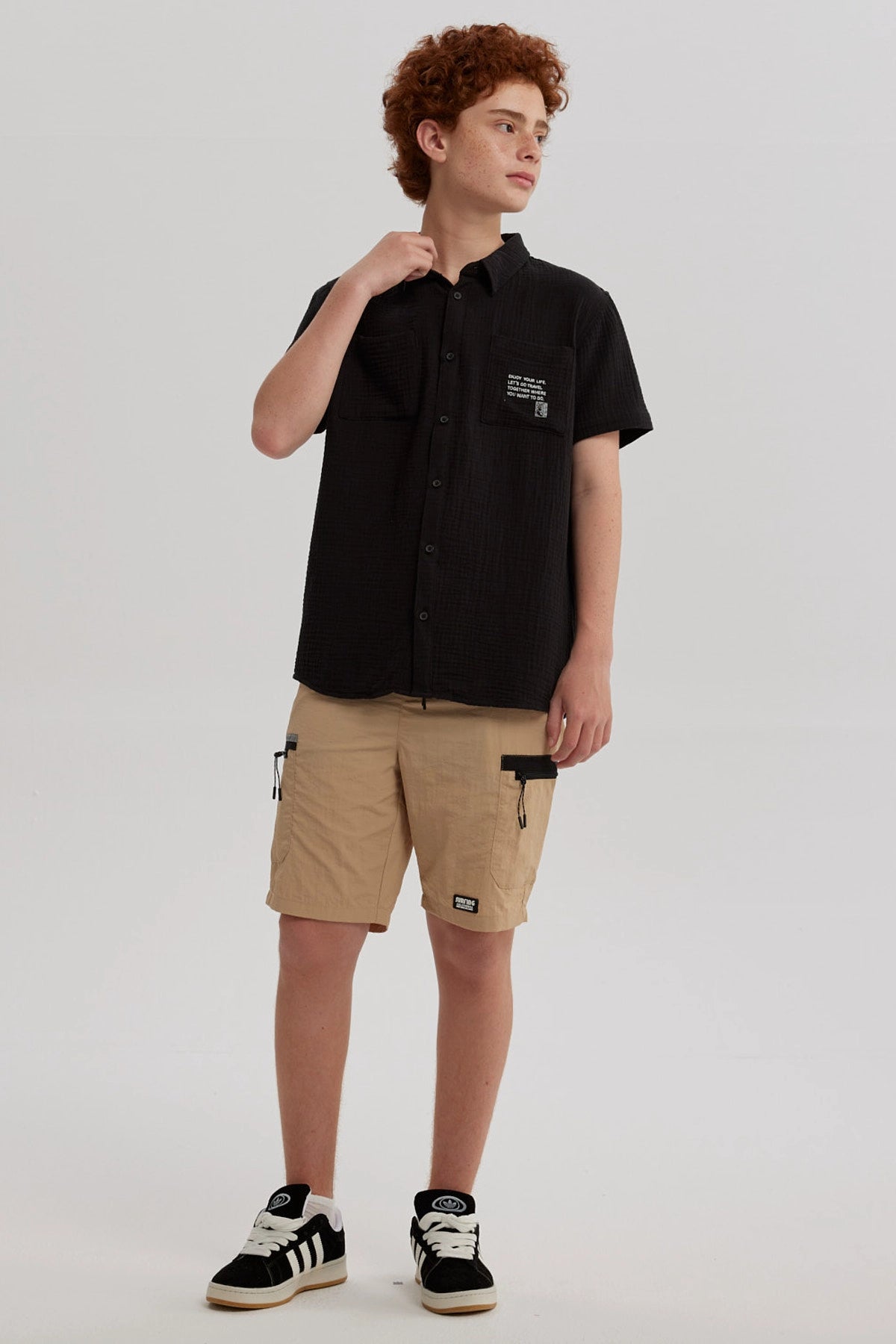 Camisa Niño Texto En Bolsillo Crudo Camisa Niño Texto En Bolsillo Negro