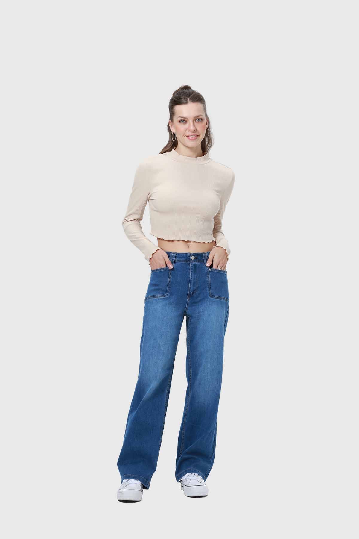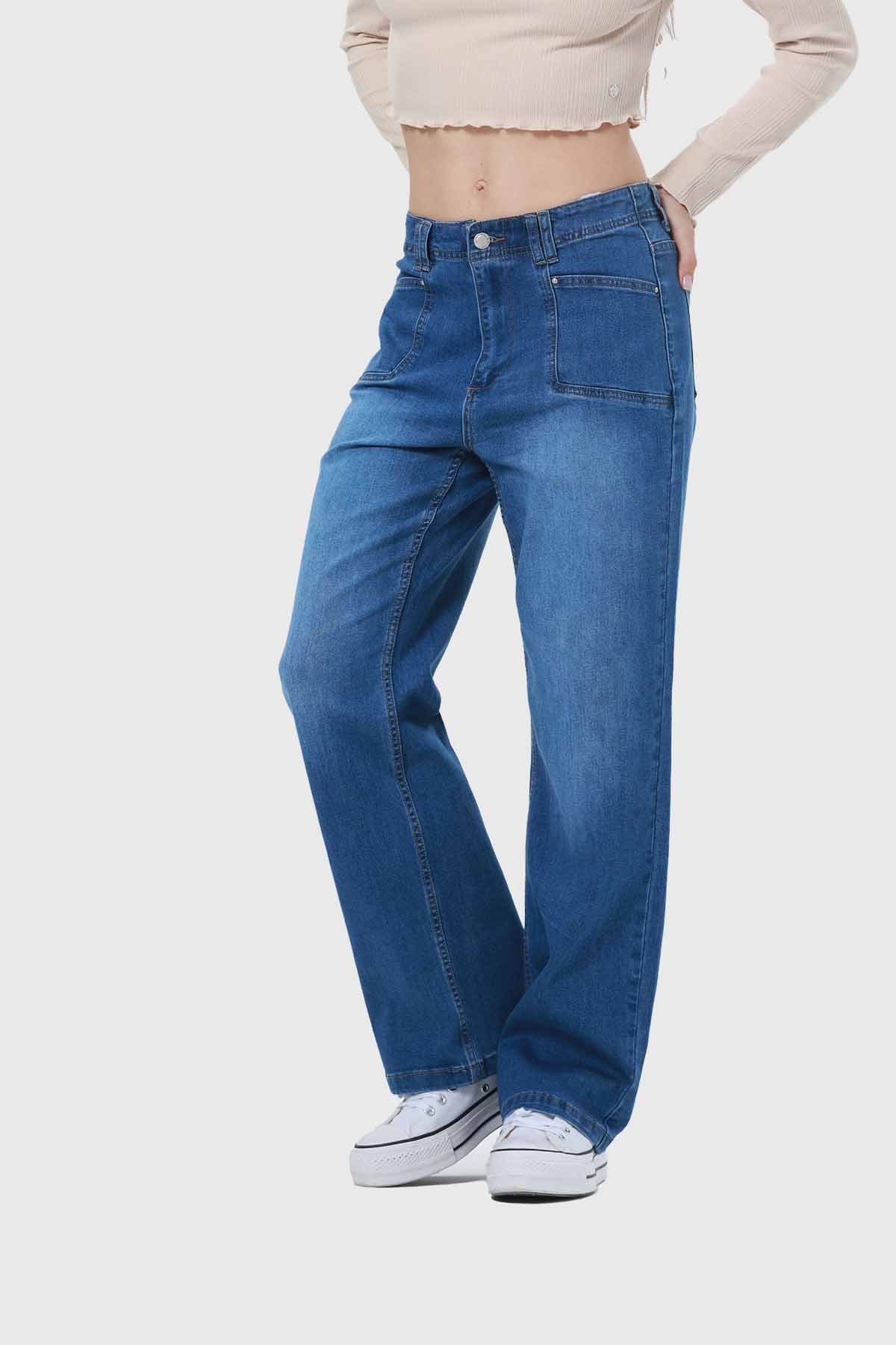 Jeans Mujer Bolsillo D Calce Recto Azul