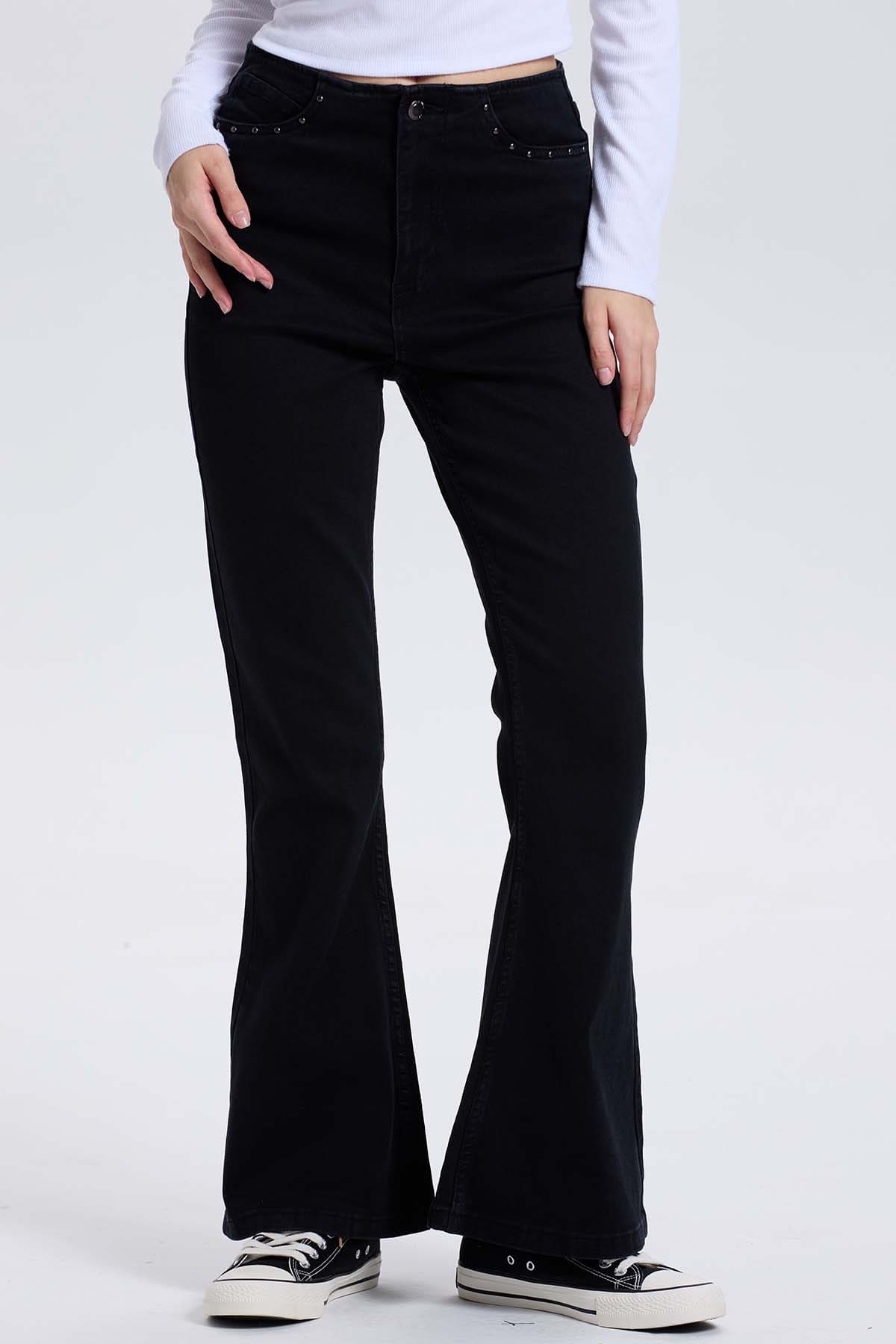 Jeans Mujer Flare Tachas Negro