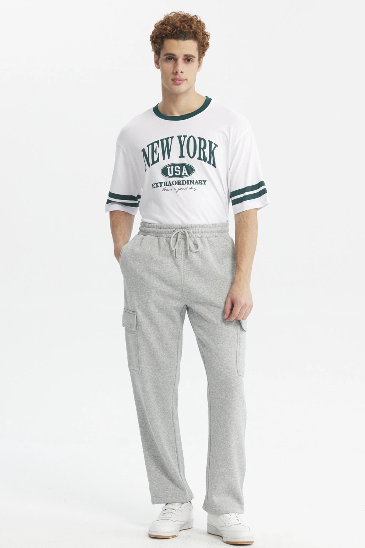 Pantalón Buzo Hombre Cargo Ajustable Gris Melange