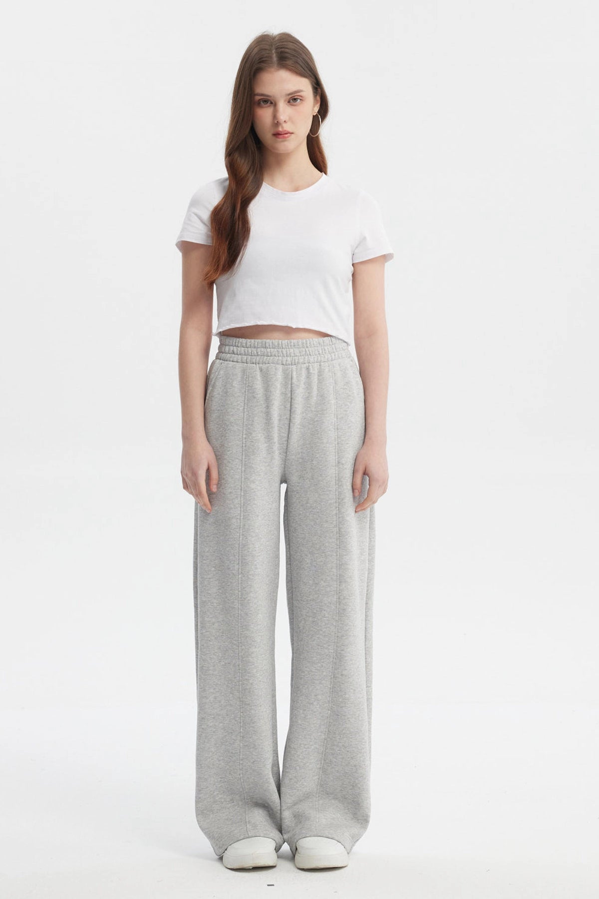 Pantalón Buzo Mujer Wide Leg Gris Melange