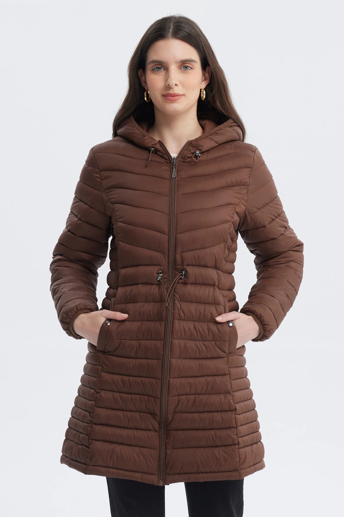 Parka Mujer Larga Básica Café Oscuro