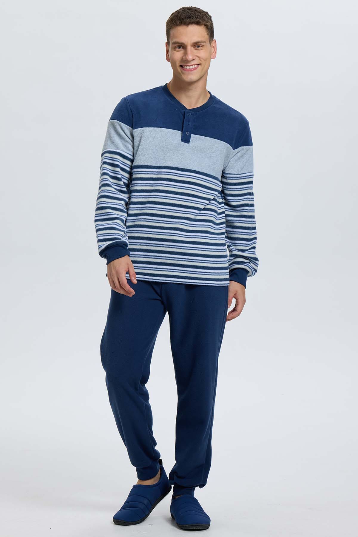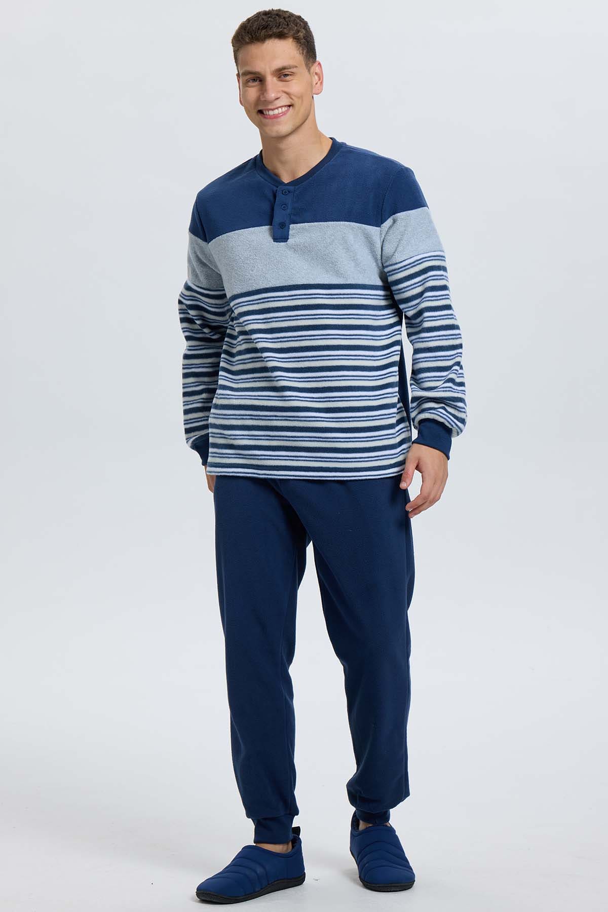 Descubre el pijama hombre CR polar azul, una prenda ideal para tus noches de descanso. Confeccionado en suave polar, te brinda una comodidad excepcional y abrigo ligero. Su diseño a rayas en tonos azules le da un toque moderno y fresco, perfecto para relajarte en casa. La suavidad del material te envolverá, haciendo que cada momento de descanso sea placentero. Este pijama es la elección perfecta para quienes buscan estilo y confort al mismo tiempo. Renueva tu look personal y siéntete bien contigo mismo al vestir esta prenda que combina funcionalidad y diseño. ¡Haz de tus noches una experiencia única!