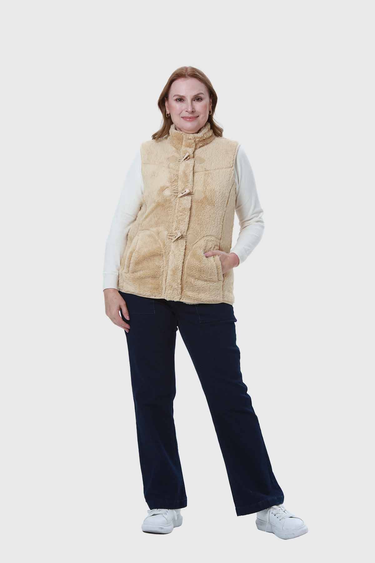 Polar Mujer Estilo Montgomery Peludo Beige