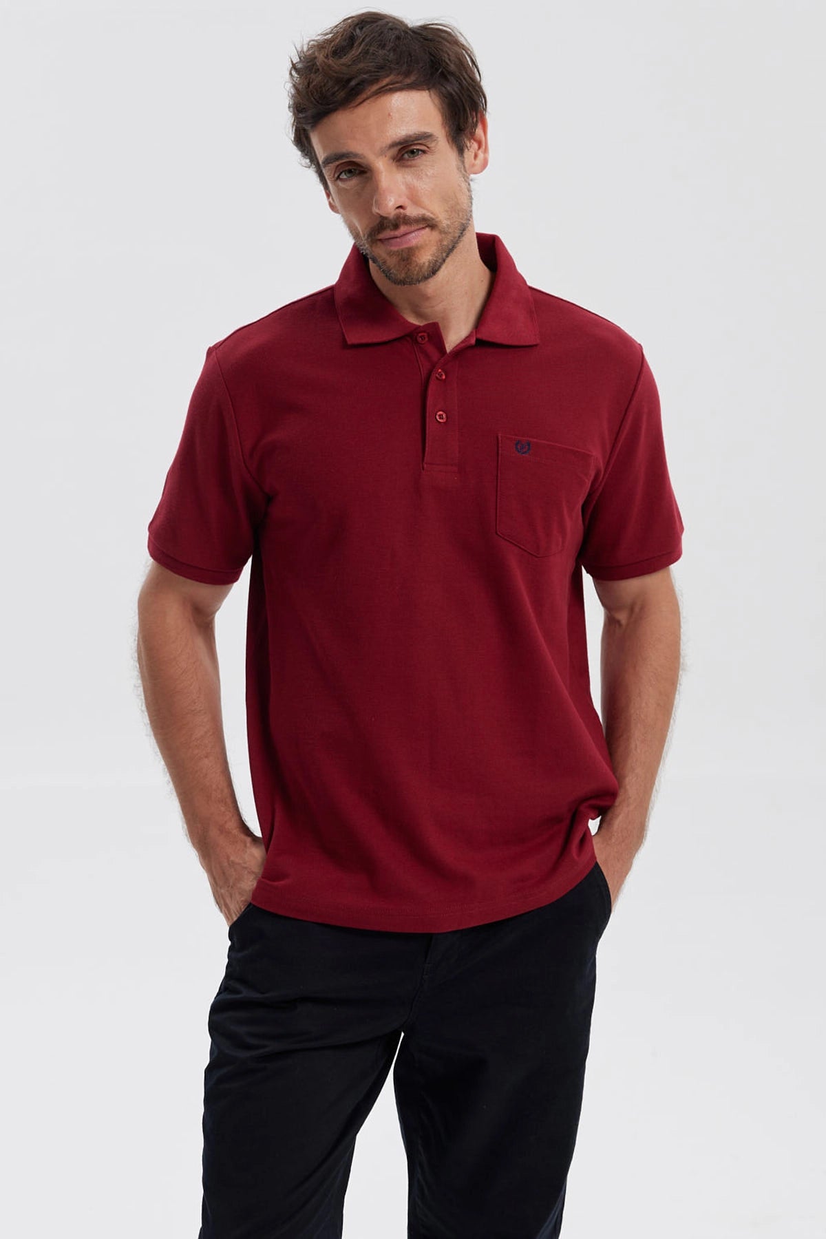 Polera Hombre Pique Básica Lisa Burdeo
