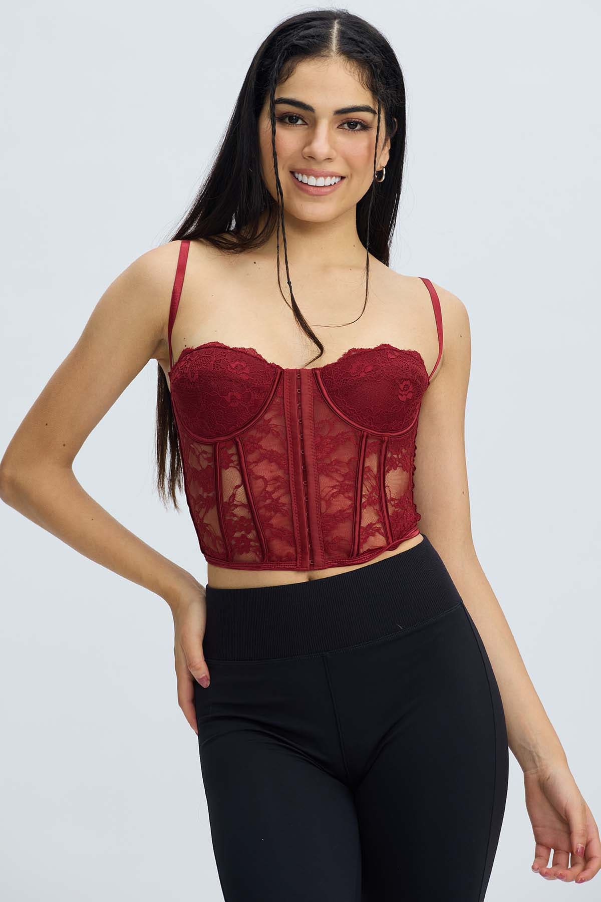 Polera Mujer Corset Burdeo