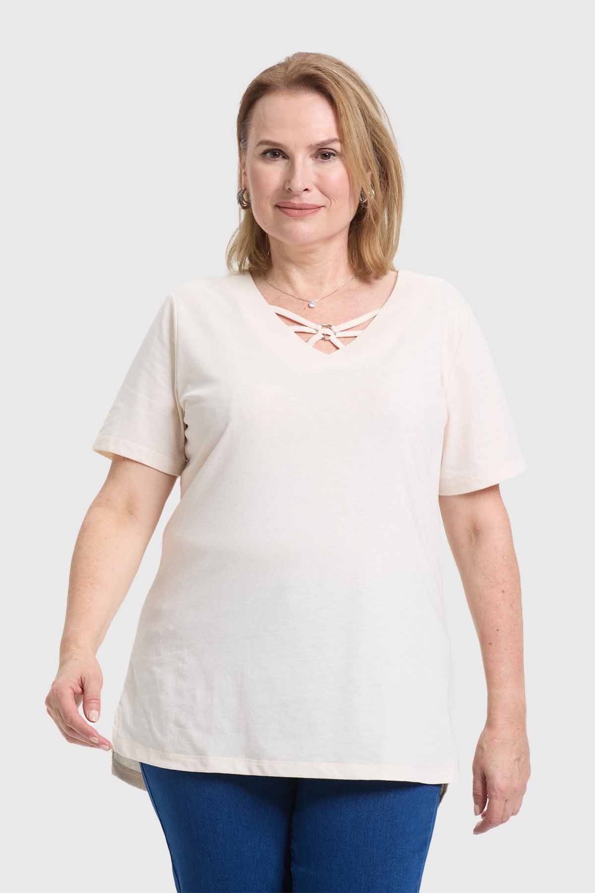 Polera Mujer Escote Recogido Arena