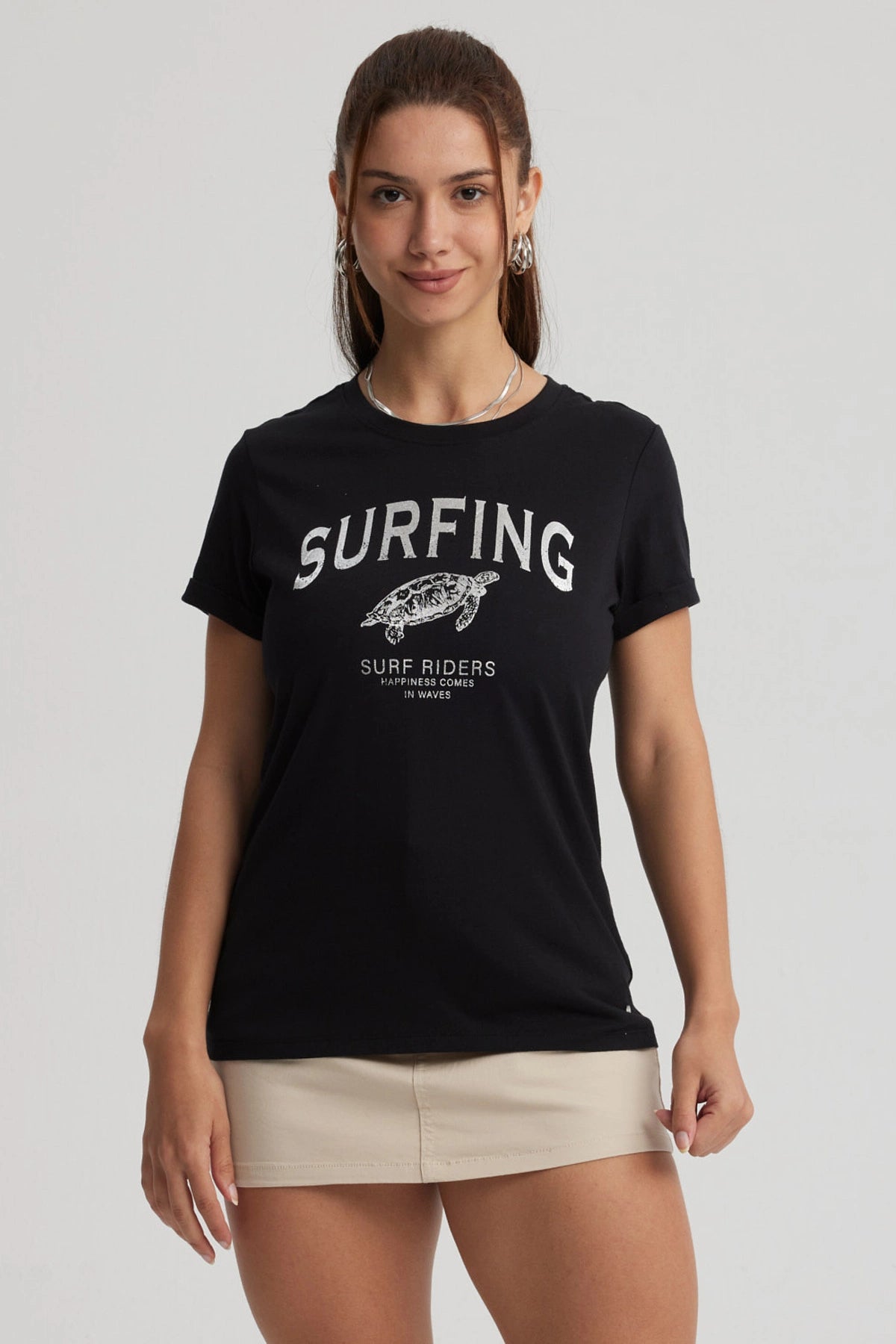 Polera Mujer Gráfica Roll Up Negro / Blanco