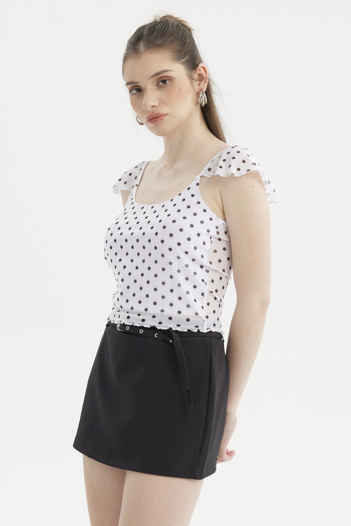Polera Mujer Manga Vuelos Escote Cuadrado Blanco