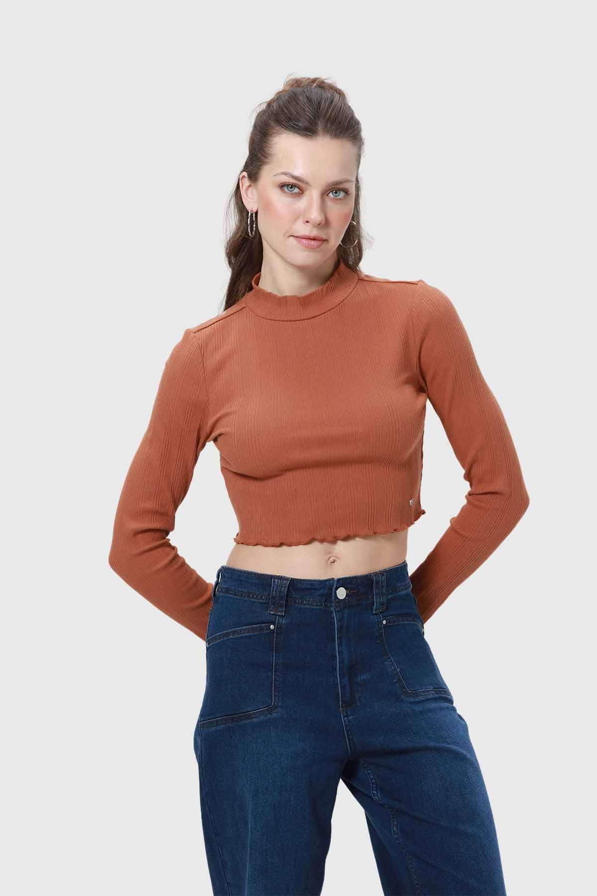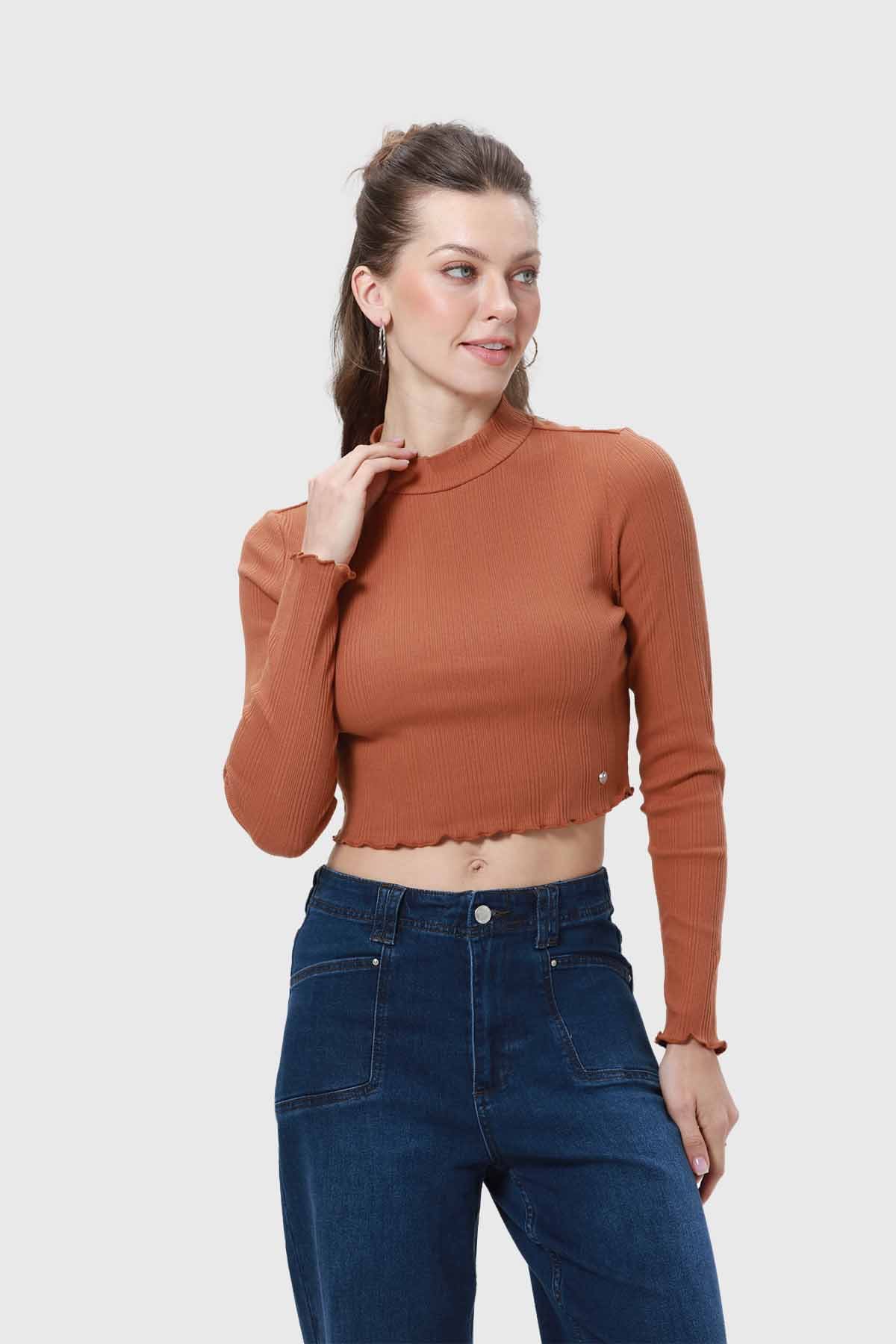 Polera Mujer Rib Café