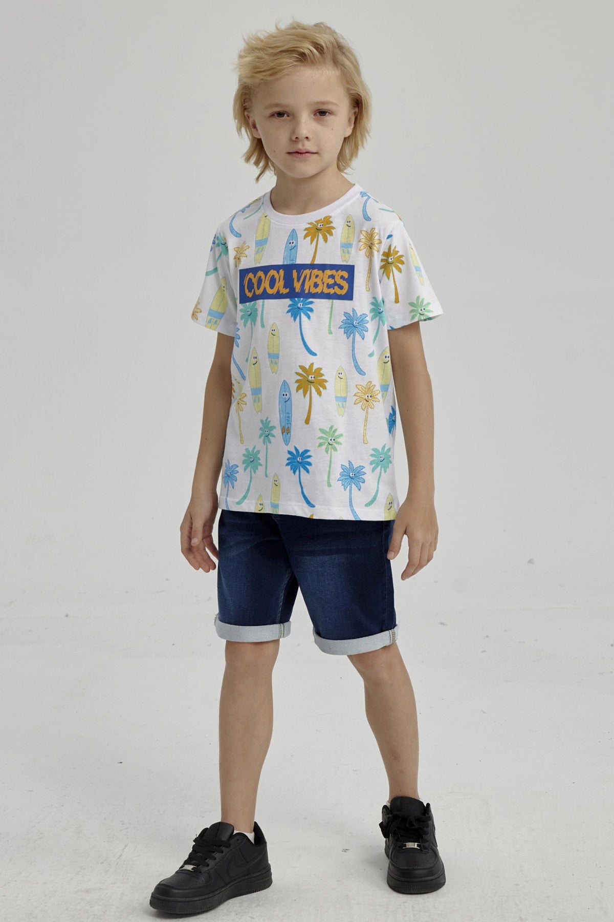 Polera Niño Mini Print Posicional Azul Petroleo Polera Niño Mini Print Posicional Blanco Polera Niño Mini Print Posicional Crudo