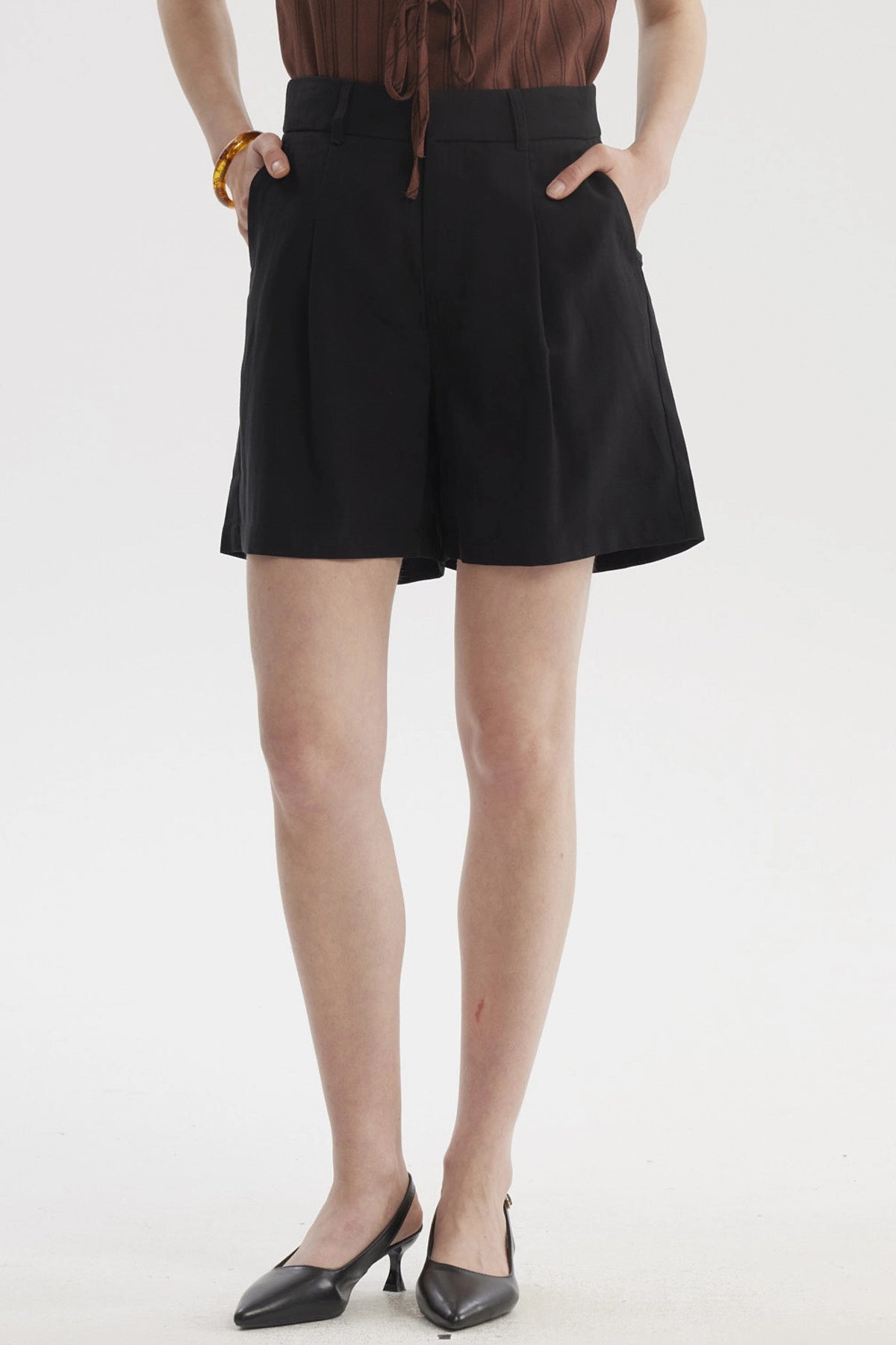 Short Mujer Sastrero Viscosa Pinzas Delanteras Negro