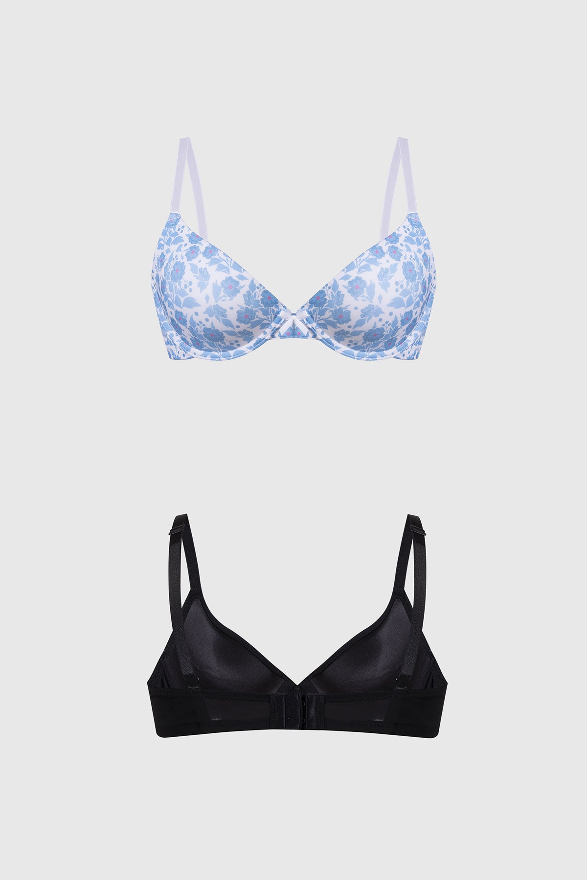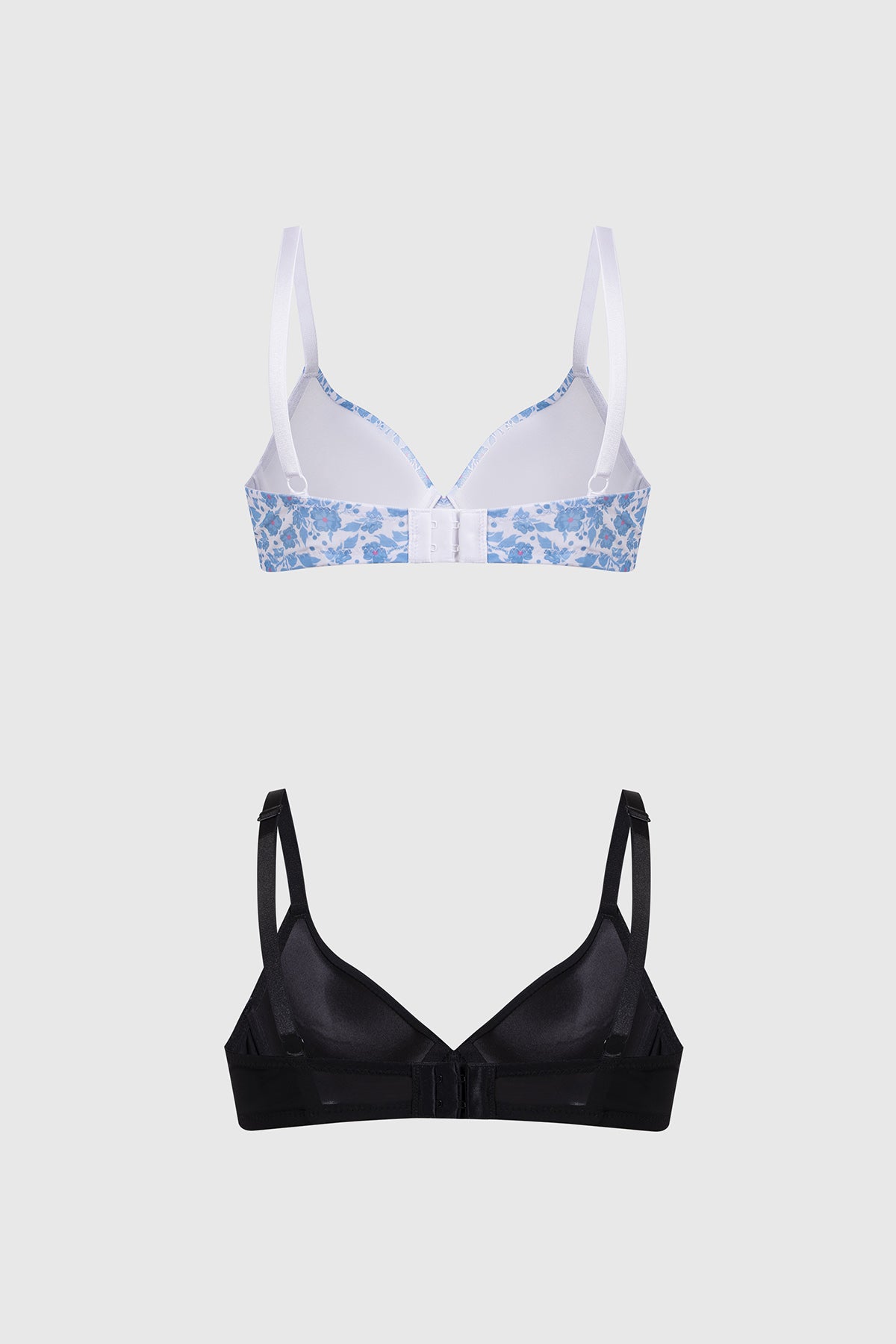 Sostén Mujer Bipack Copa Soft Liso Estampado Celeste