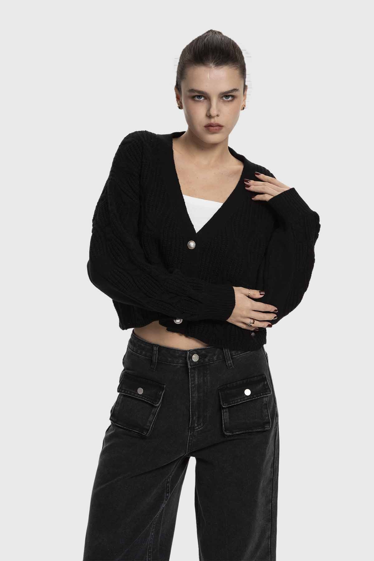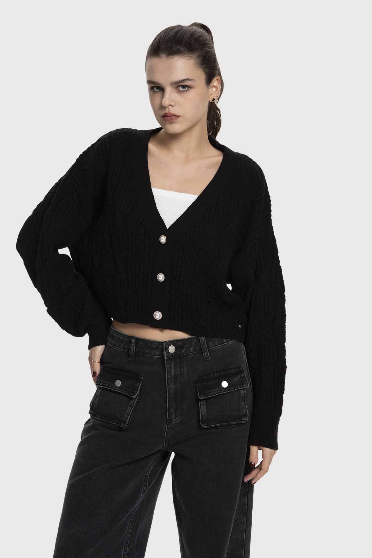Descubre el sweater de mujer con cuello V abierto en un elegante color negro. Hecho de un material suave que brinda comodidad y abrigo ligero, este diseño es perfecto para cualquier ocasión. Su estilo moderno y versátil se adapta a tu look diario, permitiéndote lucir siempre a la moda. Con detalles únicos que destacan su calidad, este sweater es ideal para combinar con jeans o faldas. Al usarlo, sentirás la suavidad en tu piel y la confianza que te da un outfit bien pensado. Renueva tu estilo y expresa tu personalidad con esta prenda que se convertirá en un básico en tu guardarropa.
